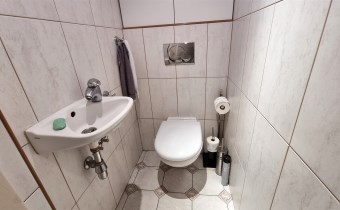 - WC  z sedesem i umywalką, , glazura, terakota