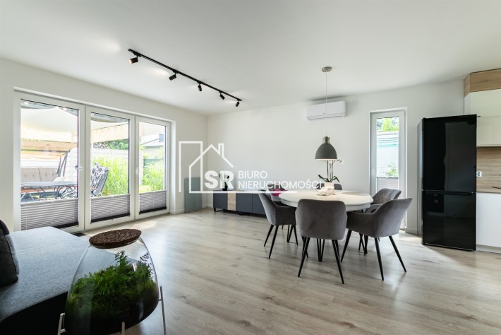 Ta funkcjonalna nieruchomość łączy w sobie komfort codziennego życia, wysoki standard wykończenia oraz wyjątkowe walory estetyczne i przyrodnicze