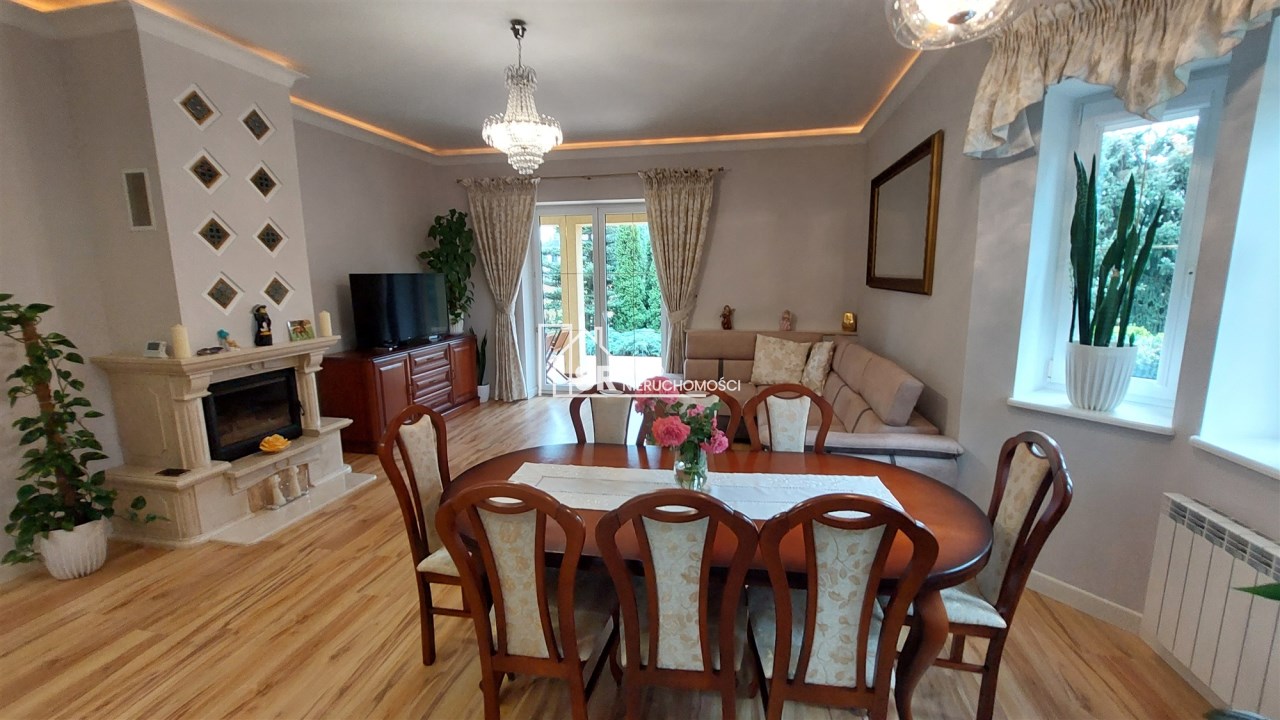 - salon o pow. 29m2, jest tu kominek; z salonu jest wyjście na duży taras