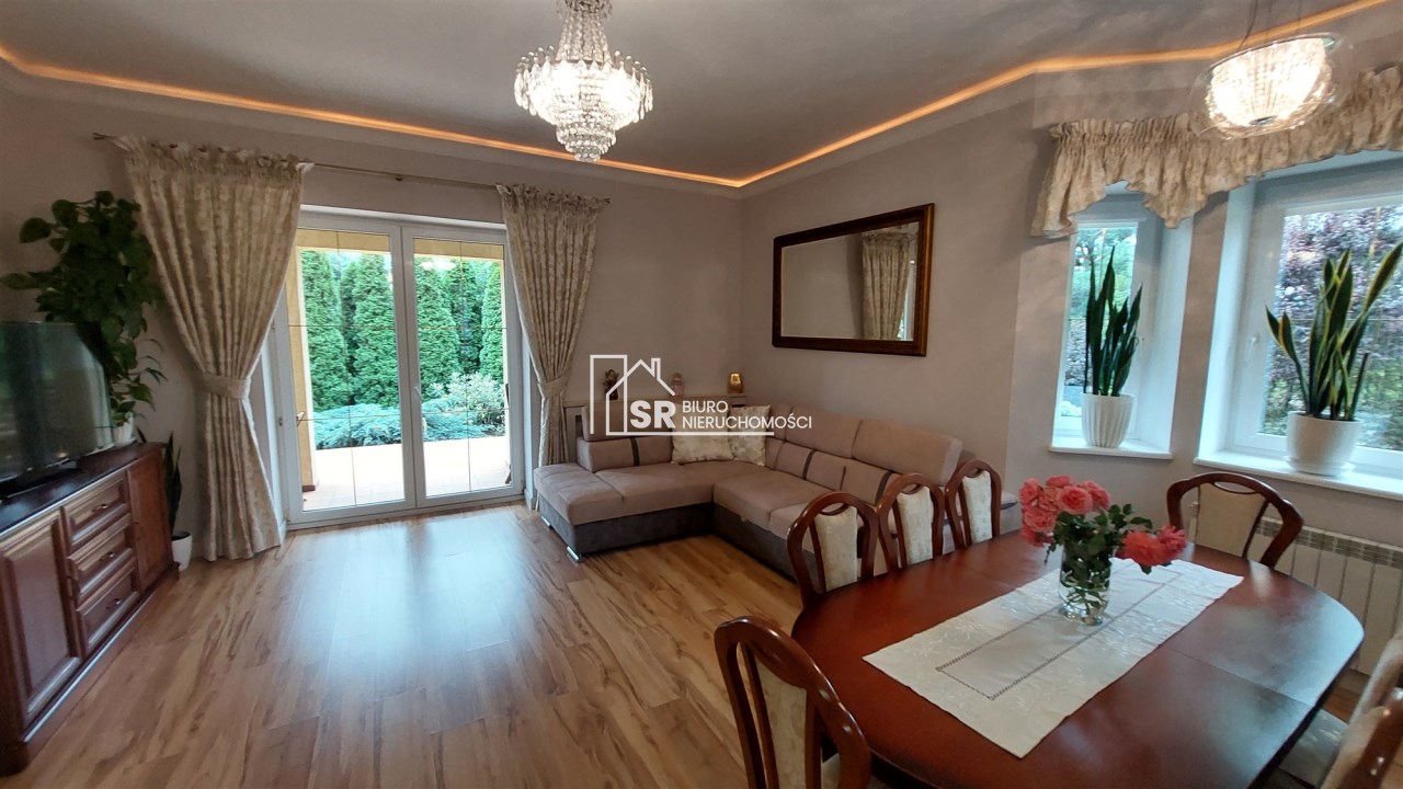 Działka o powierzchni 842m2 jest doskonale utrzymana i przemyślanie zaprojektowana. Liczne nasadzenia roślinne nadają jej niepowtarzalnego uroku. Cała działka jest ogrodzona. Front działki został wyłożony kostką. Wjazd na działkę odbywa się przez automatycznie otwieraną bramę.