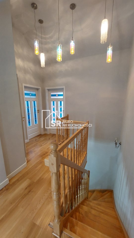 Piękne drewniane schody prowadzące na poddasze odkrywają przed nami korytarz prowadzący do trzech przestronnych i funkcjonalnych sypialni. Każda z nich została zaprojektowana z myślą o maksymalnym komforcie mieszkańców. Na piętrze znajduje się również duża łazienka z wanną oraz mini garderoba. Z głównego holu jest wyjście na duży balkon.