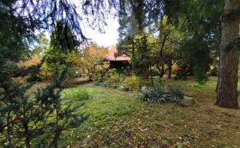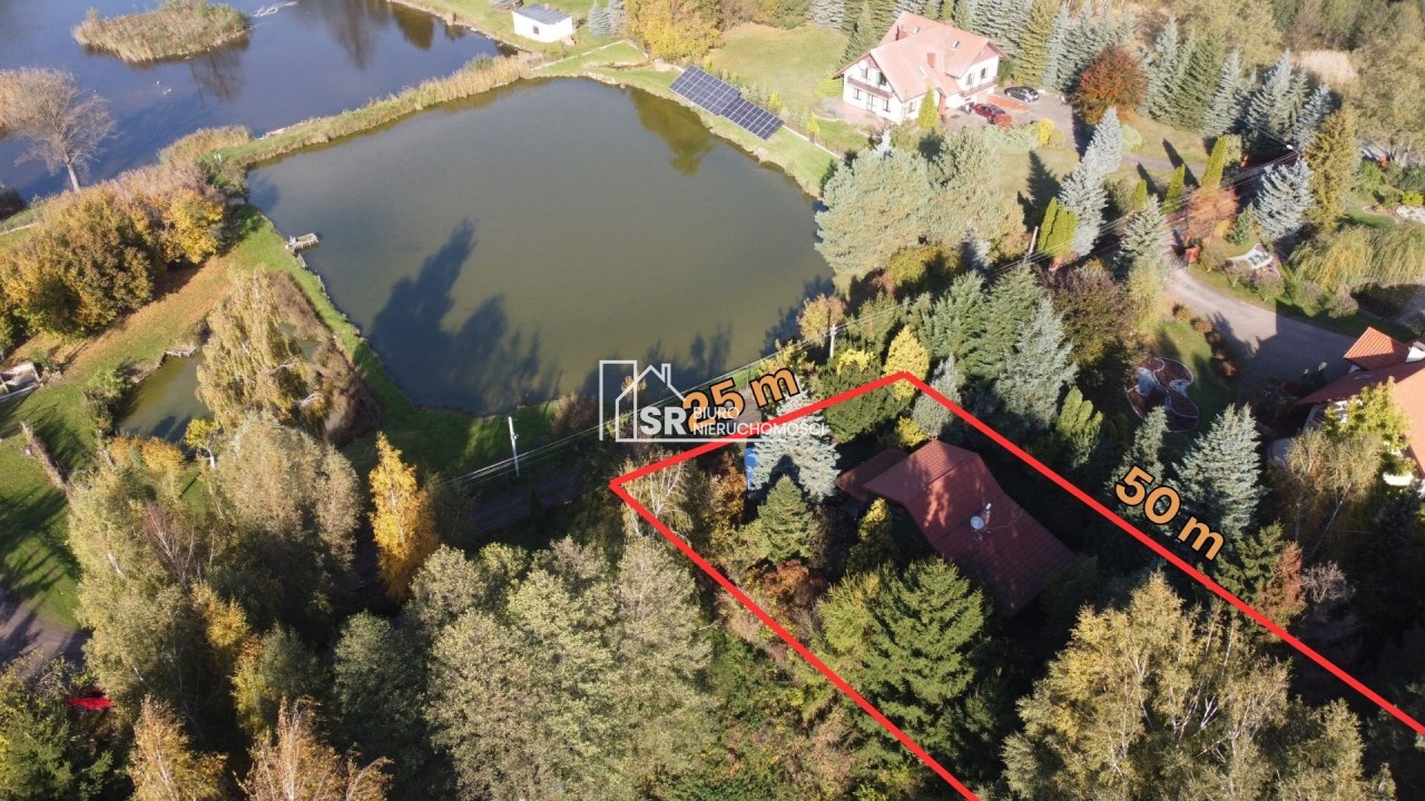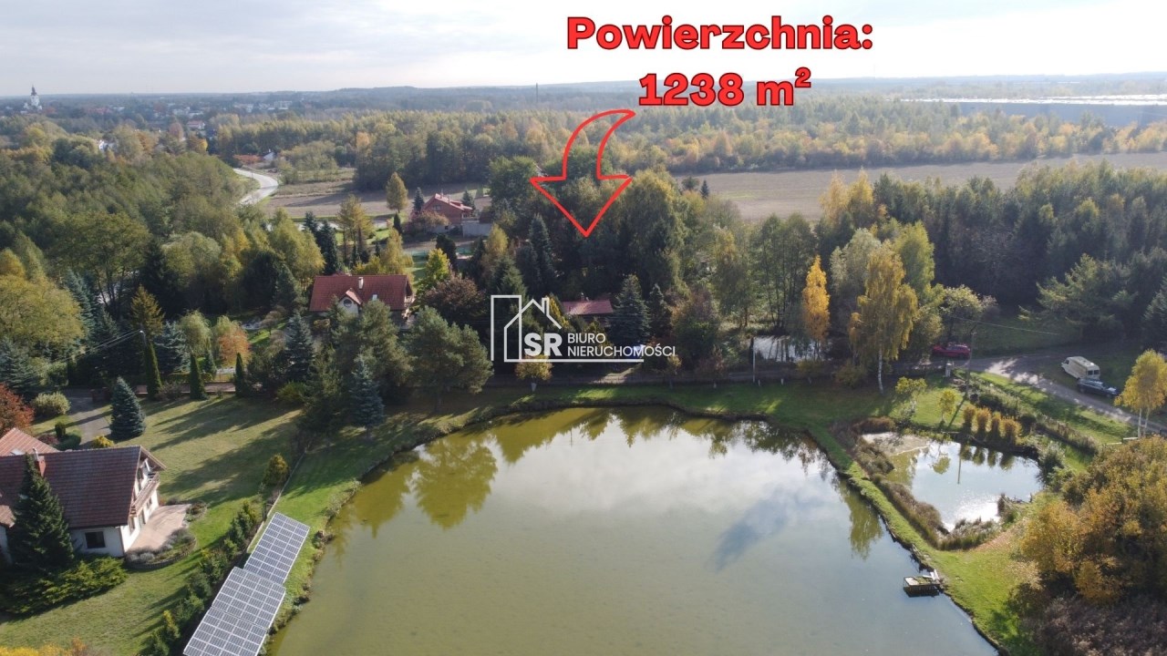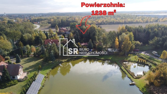 Działka o powierzchni 1238 m² jest w pełni zagospodarowana – dużo zieleni, krzewów oraz przestrzeni do wypoczynku. Nieruchomość od dużego stawu oddziela jedynie droga dojazdowa, co czyni to miejsce idealnym dla w miłośników natury.