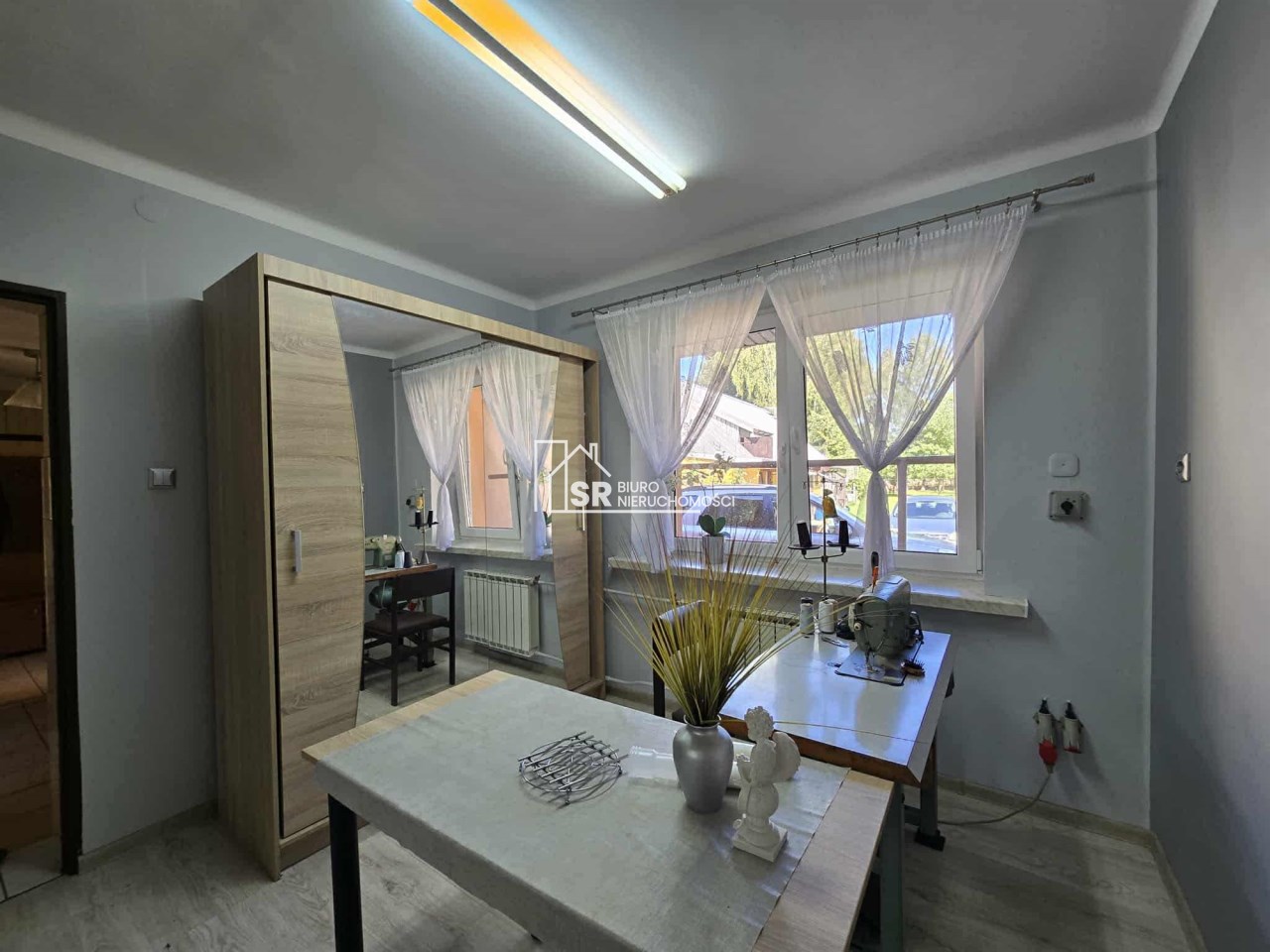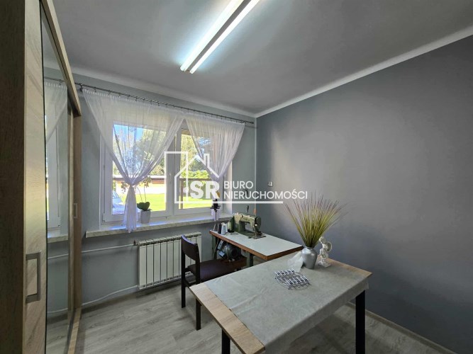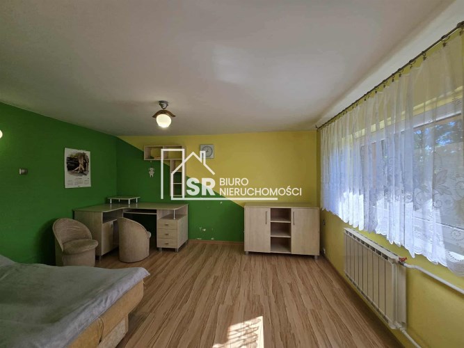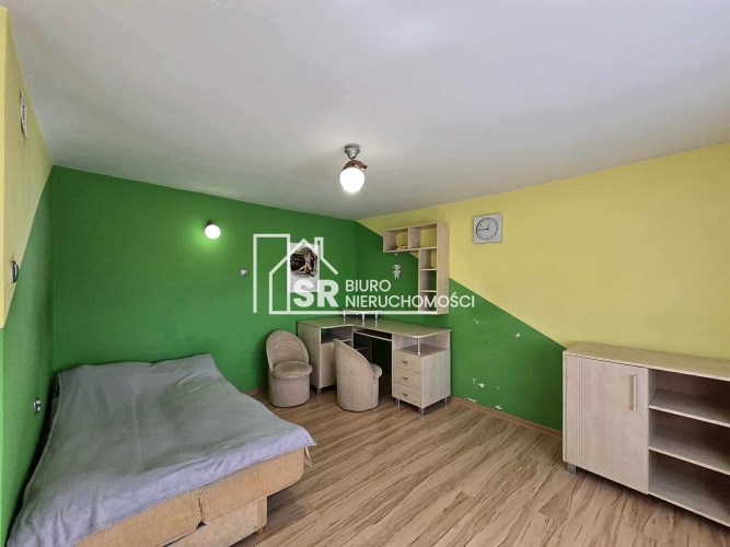 Na parterze znajdziemy wiatrołap, pokój gościnny lub gabinet, kuchnię widną z oknem, z zabudową mebli kuchennych i sprzętu AGD, duży hol, pokój z wyjściem na taras od strony południowej z widokiem na drogę i sad, 2 sypialnie, łazienkę wyposażoną w kabinę prysznicową, WC, schowek pod schodami, kotłownię. Na poddaszu druga łazienka, duża sypialnia z możliwością podziału na dwie z niezależnymi wejściami, miejsce na garderobę, klatka schodowa, dodatkowe pomieszczenie ze skosem do adaptacji na kolejny pokój.