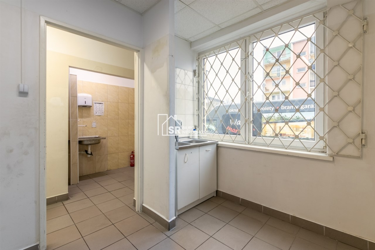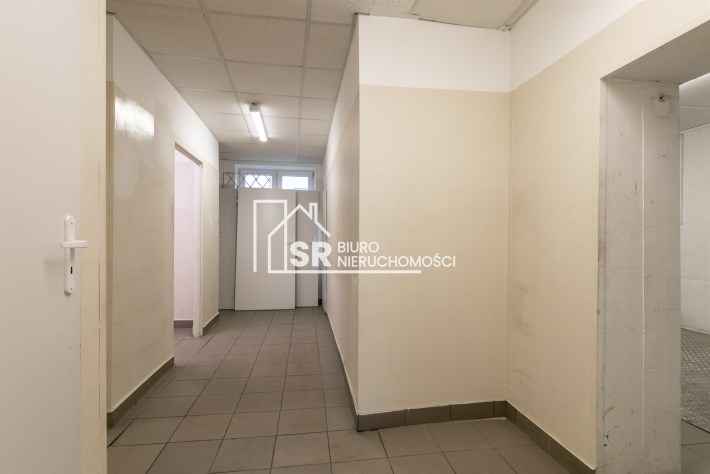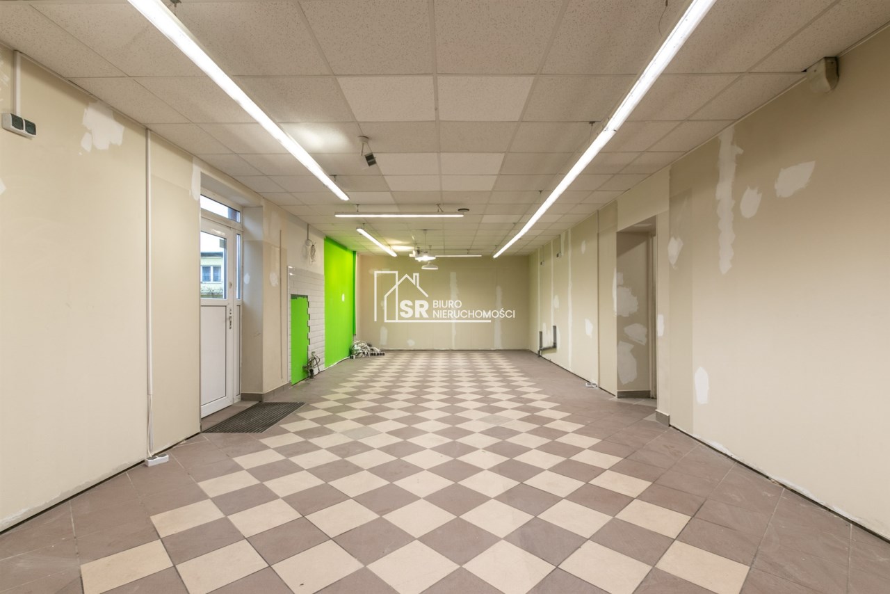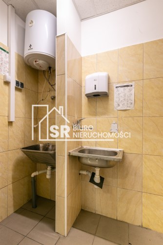Był wynajmowany na sklep Żabka w związku z tym ściany w wewnątrz budynku zostały zaadoptowane pod funkcjonowanie tej działalności.