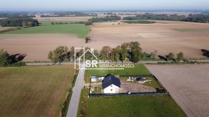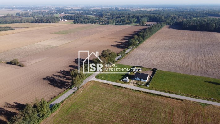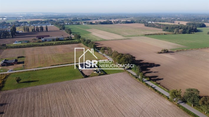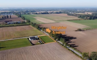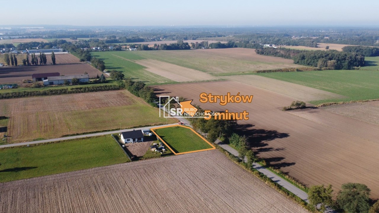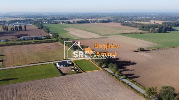 Działka znajduje się bezpośrednio przy asfaltowej drodze gminnej, z jednej strony graniczy z nową zabudową jednorodzinną. Otaczają ją pola, zabudowania jednorodzinne oraz rozległe tereny zielone co zapewnia piękne widoki i walory przyrodnicze. Okolica jest cicha, idealna dla osób szukających przestrzeni i spokoju z dala od miejskiego zgiełku, jednocześnie z szybkim dojazdem do Strykowa.
