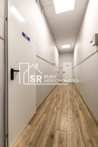 Budynek ten jest murowany, niepodpiwniczony. Okna PCV, posadzki wzmocnione,betonowe, dobrze doświetlony, wyposażony w centralne ogrzewanie, alarm, czujki dymne.