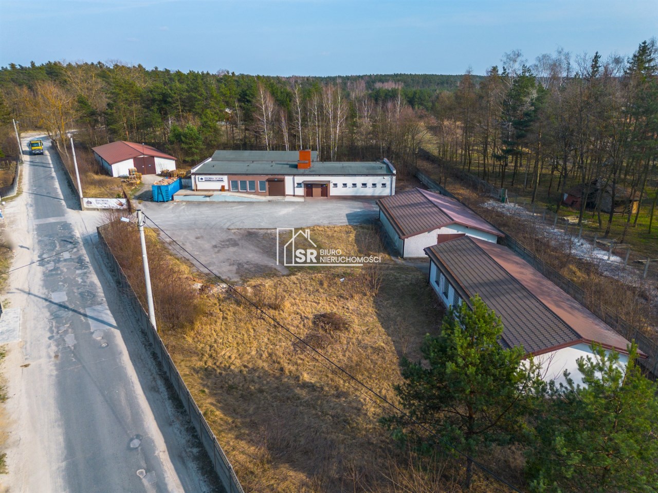 Nieruchomość posiada bardzo dobry dojazd, dostosowany zarówno do ruchu samochodów osobowych, jak i transportu ciężarowego. Lokalizacja zapewnia wygodne połączenie z głównymi drogami.