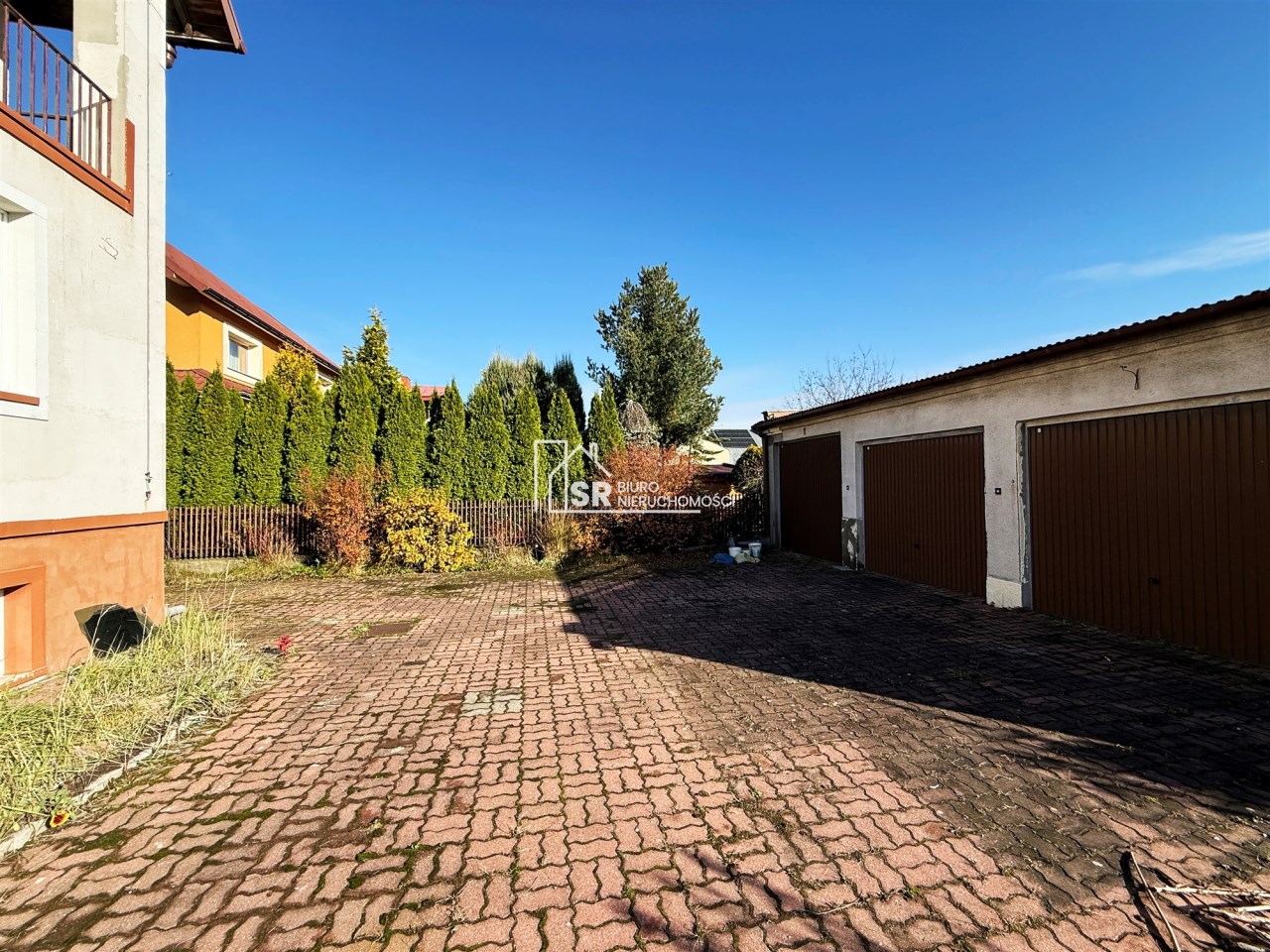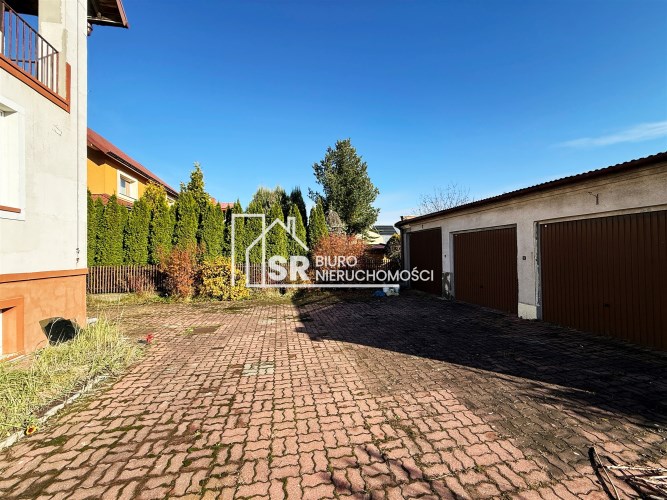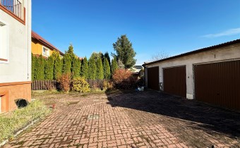Z tyłu działki znajduje się garaż trzystanowiskowy wraz z pomieszczeniem gospodarczym, wyposażony w bramy garażowe o powierzchni 76 m2.