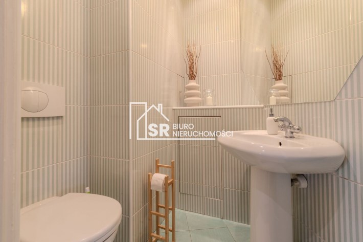 Aranżacja wnętrza jest spójna, całość umożliwia komfortowe funkcjonowanie w eleganckim, zadbanym otoczeniu.