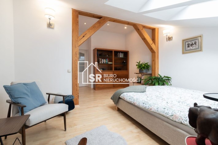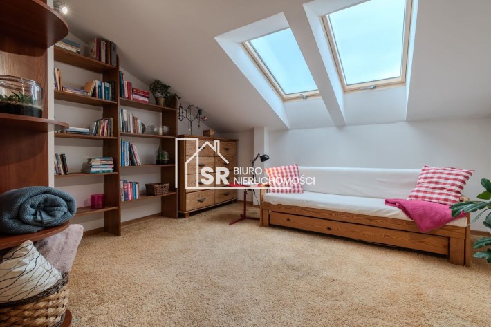 w pokoju jest okno połaciowe (drewniane) - nowe (2026 r.) oraz drugie okno typowych rozmiarów. Na podłodze parkiet - cyklinowany w 2026 r.;