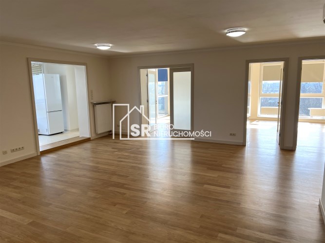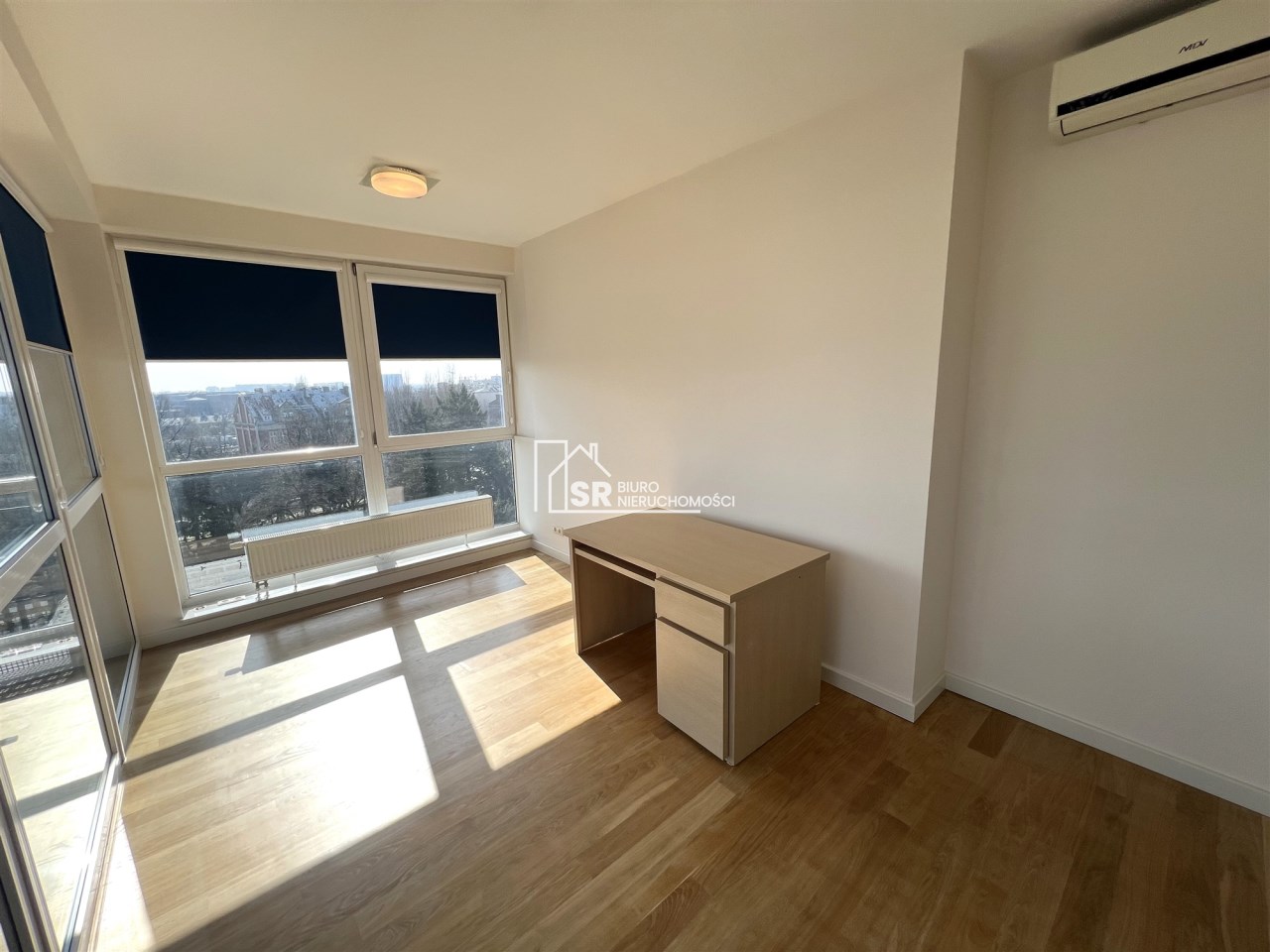 ², przeszklone ściany od strony wschodniej i południowej, klimatyzator, wyjście na duży 14-metrowy taras typu loggia od strony płd-wsch,