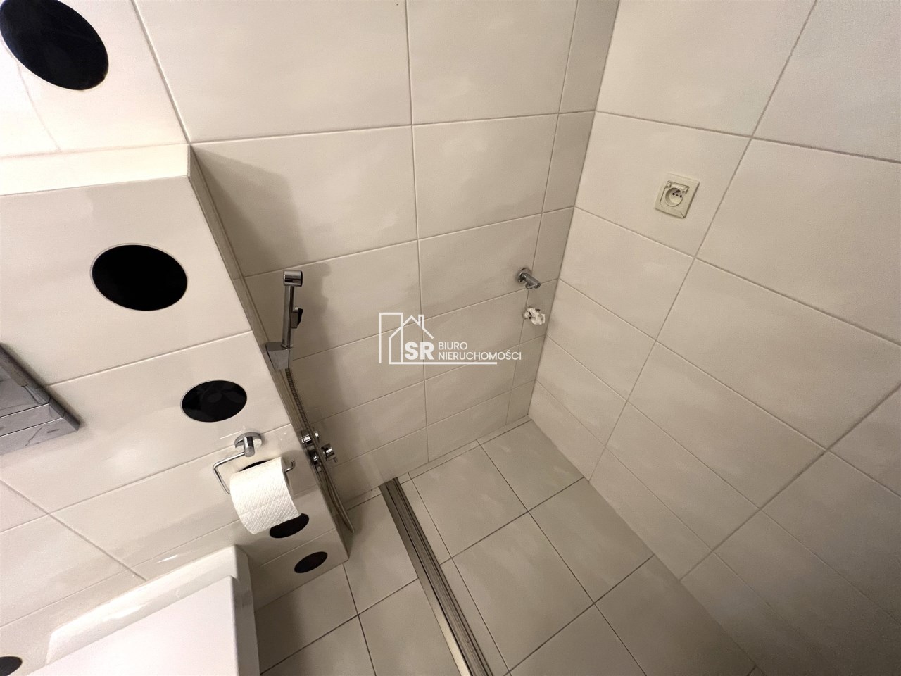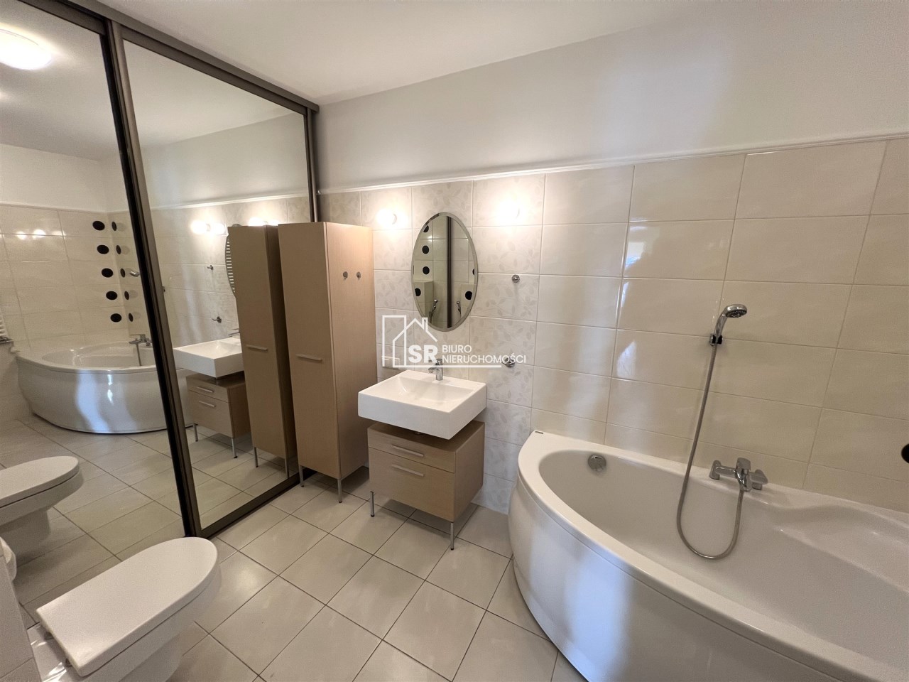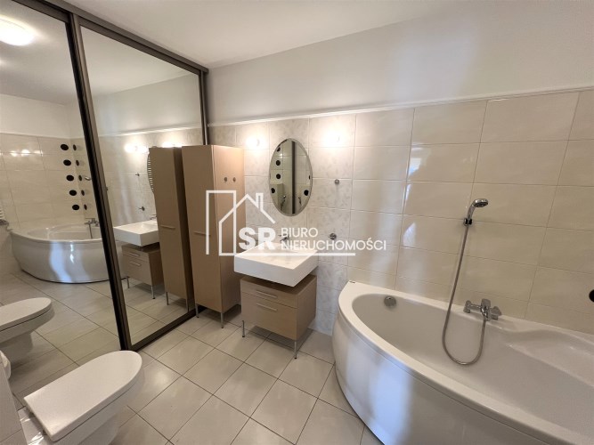 ², obok głównej sypialni, z wanną narożną i kabiną prysznicową, pralnia oddzielona drzwiami przesuwnymi z lustrem, przygotowane podłączenie pralki oraz słuchawka bidetowa,