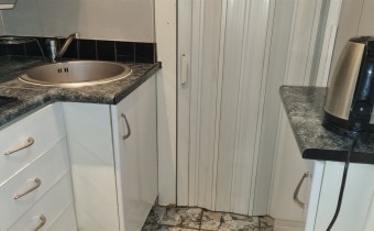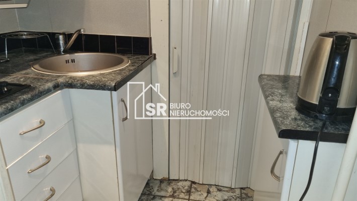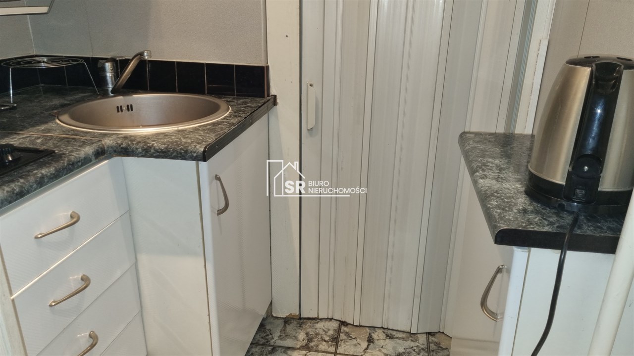 - ANEKS KUCHENNY: ściany: częściowo gładzie gipsowe, częściowo glazura; podłoga: terakota; szafki kuchenne stojące i wiszące; zlewozmywak + bateria, płyta indukcyjna 2 palnikowa, kuchenka mikrofalowa, czajnik elektryczny