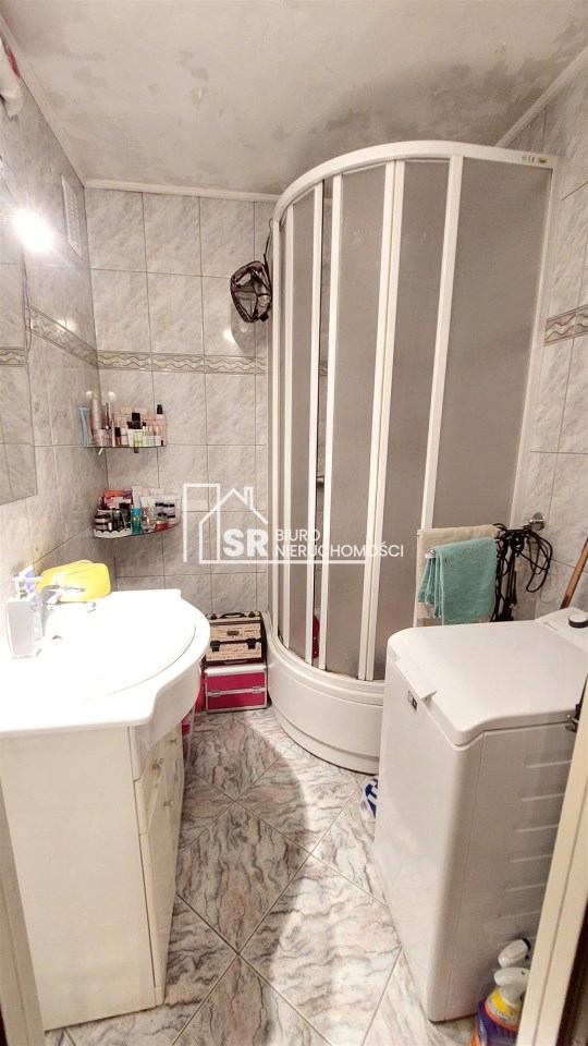 Łazienka- glazura terakota, kabina prysznicowa, umywalka.