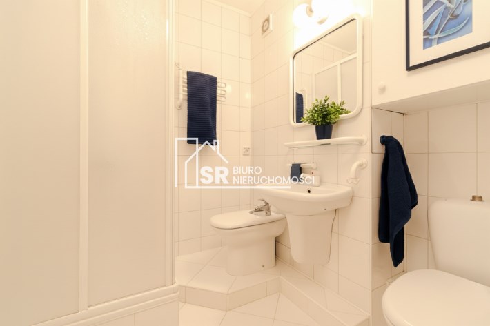 Wyposażenie łazienki bidet, lustro, natrysk, umywalka, WC