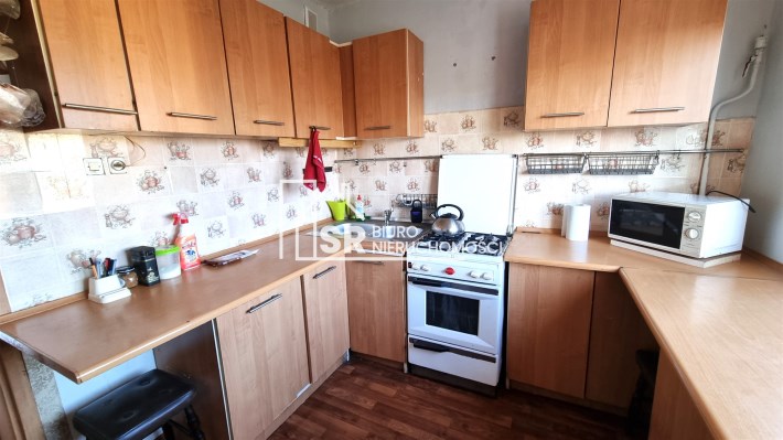 KUCHNIA:  podłoga wykładzina PCV, okno PCV, meble kuchenne z kuchnią gazowo-elektryczną, zlewozmywakiem chromoniklowym