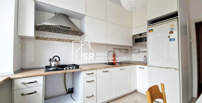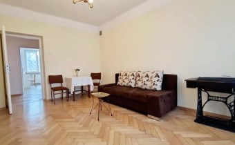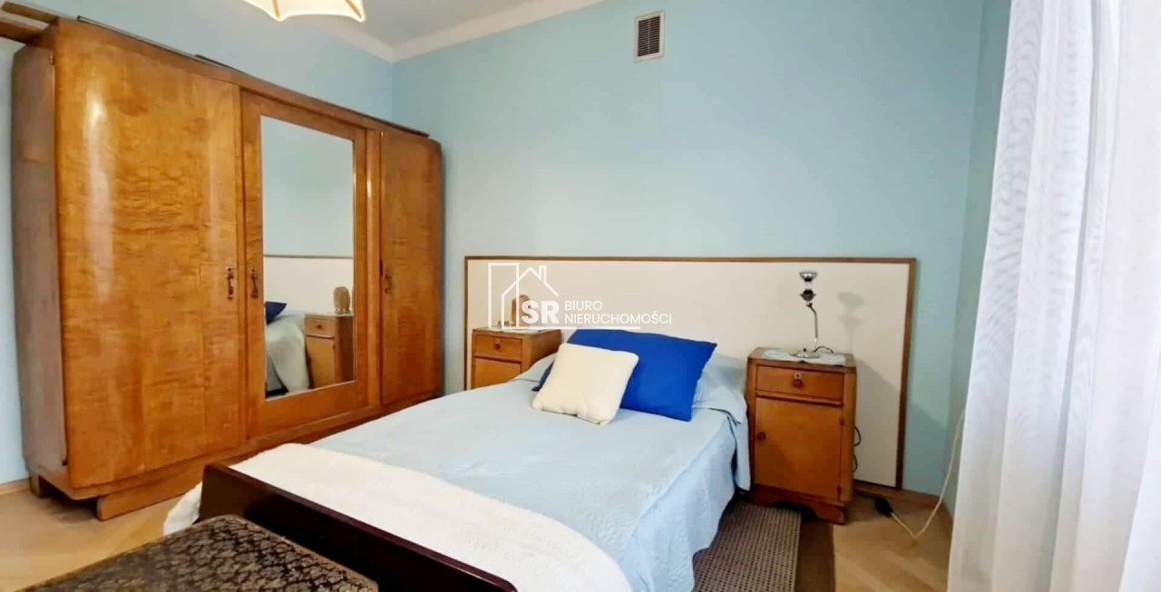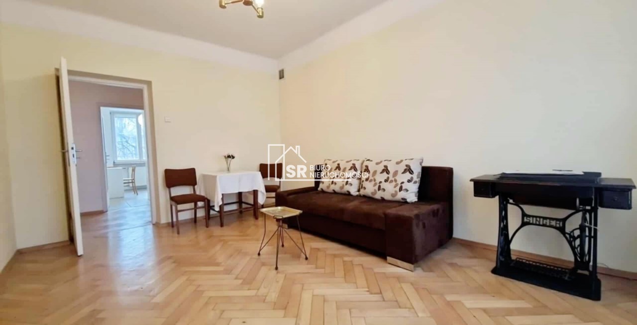Mieszkanie dwupokojowe w pełni rozkładowe, ustawne, widne pokoje. Jeden pokój na planie kwadratu, drugi prostokąta.  Wysokość w pomieszczeniach 2,75 m. Na podłodze ładny bukowy parkiet, po gruntownej renowacji czyli ponownym zerwaniu, przełożeniu, cyklinowaniu i polakierowaniu. Mieszkanie do odmalowania i do zamieszkania. W jednym pokoju jest wbudowana szafa w wnękowa, z zamykanym biurkiem. W kuchni nowe  meble pod wymiar. Łazienka z wanną, umywalką i wc.