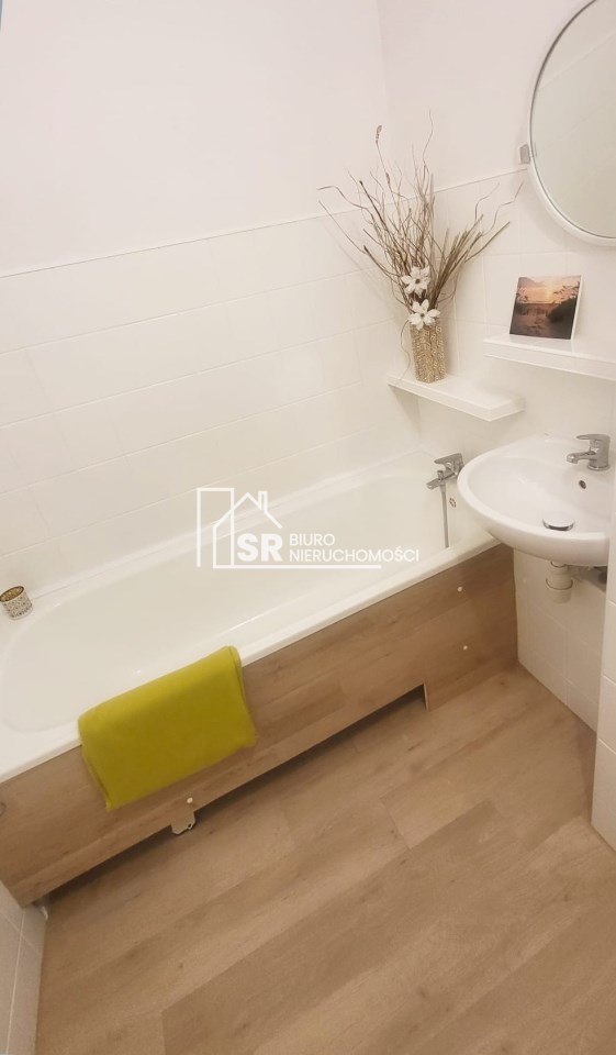 Mieszkanie składa się z trzech rozkładowych pokoi, oddzielnej, widnej kuchni, łazienki, wc i przedpokoju.