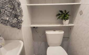 • W pokojach na podłodze wykładzina parkiet, w  łazience, wc i przedpokoju terakota, w kuchni panele.