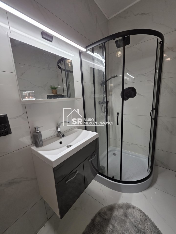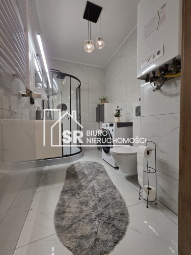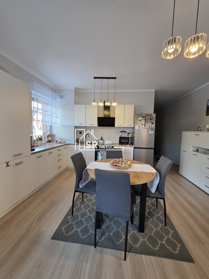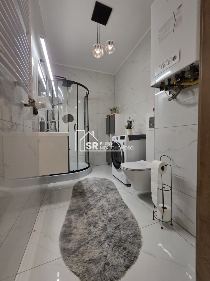 Okna aluminiowe, rolety zewnętrzne oraz nowoczesne wykończenie zapewniają komfort i bezpieczeństwo. Ogrzewanie gazowe oraz ciepła woda z pieca gazowego gwarantują niskie koszty utrzymania.