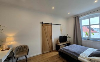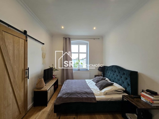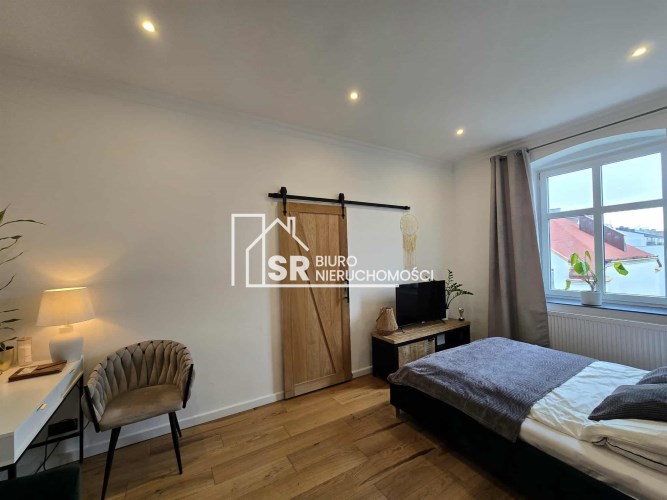 Mieszkanie jest piękne, wysokie, wyremontowane w odnowionej kamienicy w centrum miasta.