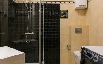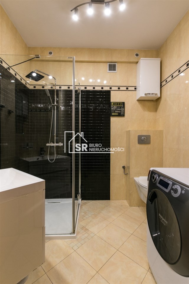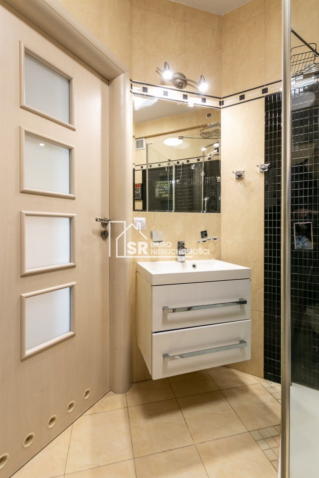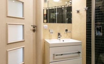Łazienka wyposażona w kabinę prysznicową.