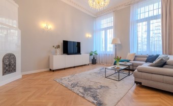 W mieszkaniu są oryginalne sztukaterie i unikatowy piec kaflowy.