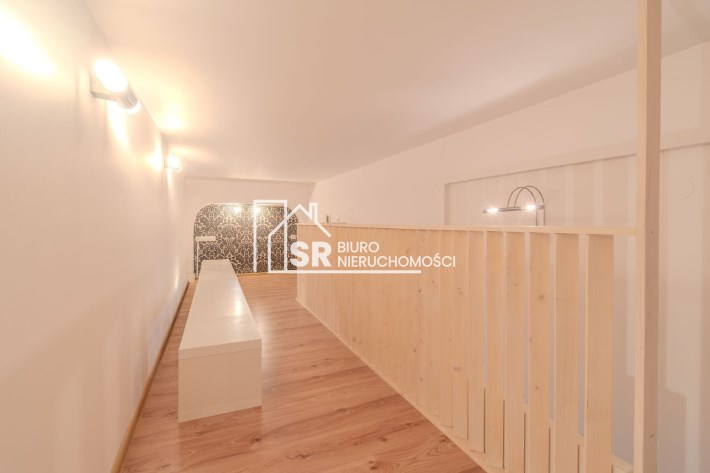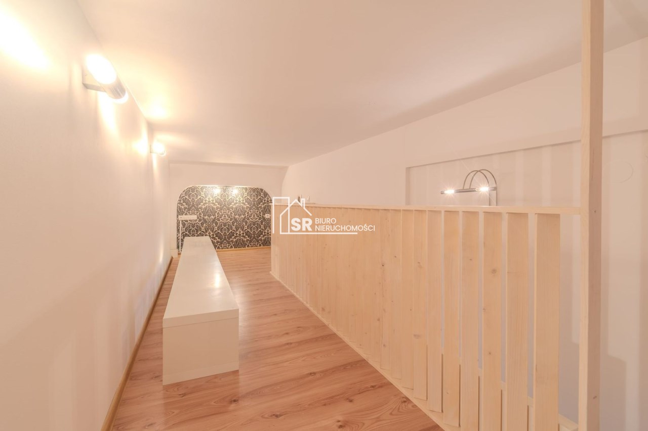 Lokal składa się z dwóch pokoi, kuchni, antresoli, garderoby, przedpokoju i łazienki.
