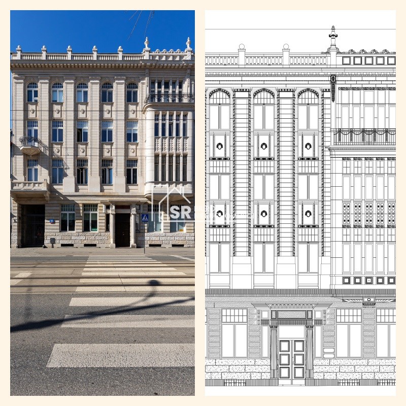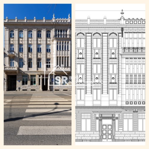 Jest to czterokondygnacyjny elegancki budynek mieszkalny z lokalami usługowymi w parterze.