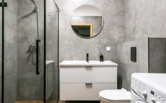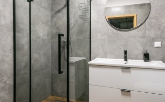Wyposażenie łazienki lustro, prysznic, umywalka, WC