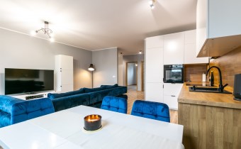 • Pokój dzienny z aneksem kuchennym i wyjściem na balkon