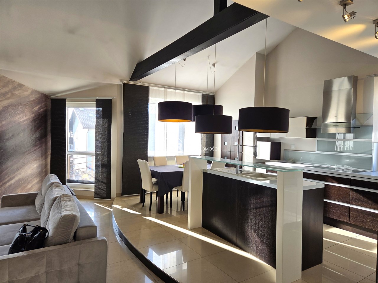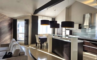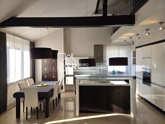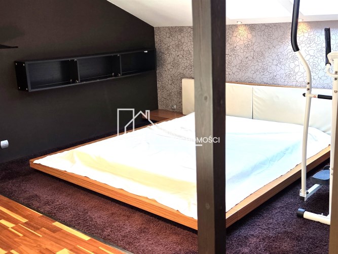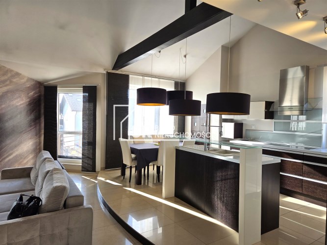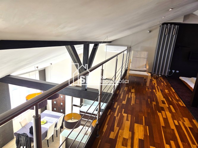 Apartament mieści się na kameralnym, zamykanym osiedlu w budynku wielorodzinnym z 2008 r. W 2013 r. mieszkanie zostało odremontowane przy użyciu wysokiej jakości materiałów. Kuchnia w zabudowie pod wymiar wyposażona w wysokiej klasy sprzęty AGD (zmywarka, płyta, piekarnik, lodówka i zamrażarka marki Siemens i Liebherr). Mieszkanie posiada absolutnie wyjątkowy, przestronny pokój kąpielowy, w którym można zrelaksować się po długim, męczącym dniu. Antresola daje dodatkową, w pełni funkcjonalną przestrzeń, oferując niesamowity widok z góry na salon i kuchnię.