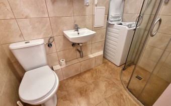 - ŁAZIENKA+ WC: ok. 3,5 m kw, nowoczesna glazura i terakota, kabina prysznicowa, umywalka, sedes, pralka