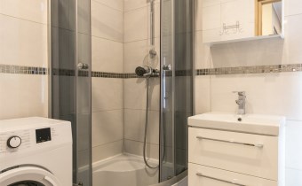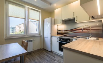 Mieszkanie ma wyposażoną kuchnię w meble w zabudowie  wraz ze sprzętem AGD: lodówko-zamrażarka, piekarnik, płyta indukcyjna, okap. Łazienka  w pełni wyposażona.