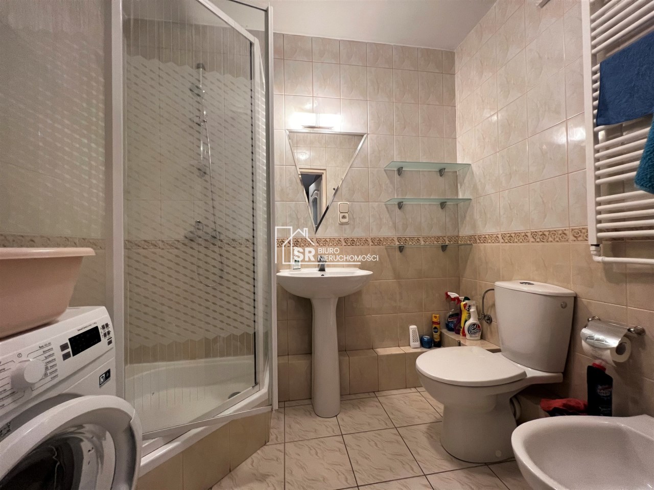 - ŁAZIENKA Z WC: glazura, terakota, kabina prysznicowa, nowa pralka, sedes, bidet, umywalka z nogą, półki szklane,