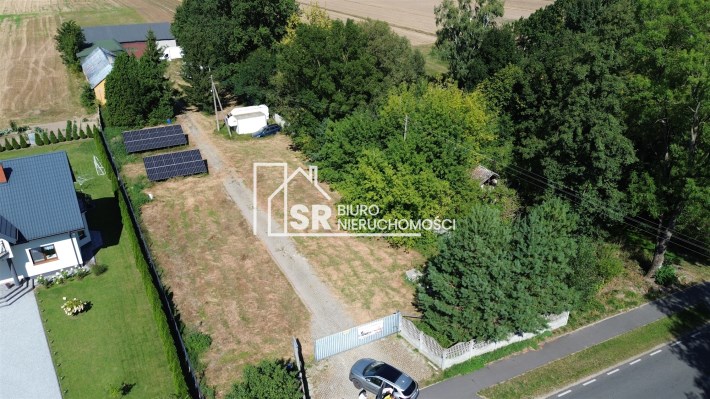 Duża działka 4979m2 z bezpośrednim dostępem do drogi publicznej. Działka ogrodzona, z duża bramą i utwardzonym podjazdem do budynków.